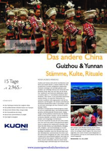 Es ist eine Traumreise für jene die sich schon immer eine Tour durch das andere China gewünscht haben. Nicht zu vergessen der Studienreise Charakter: Eine Reise mit einer Mixtur aus Kulturhistorie, Ethnographie, Religions- und Geomorphologie. Es ist eine strukturierte Studienreise und Expedition, d.h. wir benötigen Flexibilität, denn die Stämme leben nach dem Mondkalender und bestimmen ihre Feste nach den seherischen Fähigkeiten der Alten. Feste werden in jedem Dorf unterschiedlich gefeiert, denn jede Gemeinschaft hat ihre eigenen Traditionen und Aktivitäten. Es kann vorkommen, dass wir unsere Route kurzfristig wegen Zeitänderungen der Festivals abändern müssen. Eine flexible Haltung und die Bereitschaft, sich auf notwendige Improvisation vorzubereiten, ist wichtig in dieser Region! Wir reisen durch Gegenden, die zu den ärmsten und entlegensten in China gehören und man ist nicht überall auf den Tourismus eingestellt.